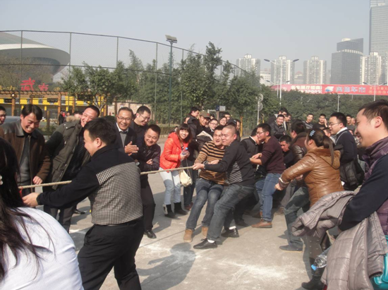 2014年1月21日,由公司工程管理中心组织的拔河比赛于在市奥体中心隆重举行,参加比赛的团队有公司工程管理中心各职能部门及重庆区域各项目部团队,大家本着体育竞技的拼搏精神,经过一番角逐,万科城项目部夺得拔河比赛冠军。拔河比赛结束后,进行了2013年度公司羽毛球、乒乓球、篮球及拔河各项比赛的颁奖典礼。